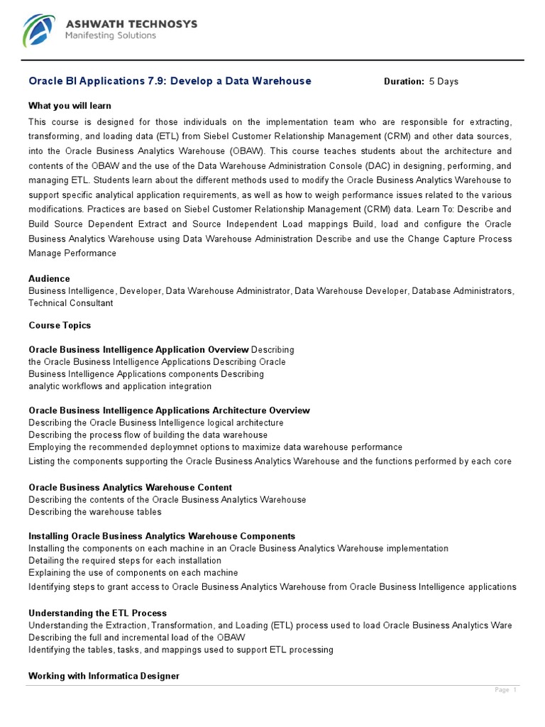 Data Warehousing And Business Intelligence A Bi