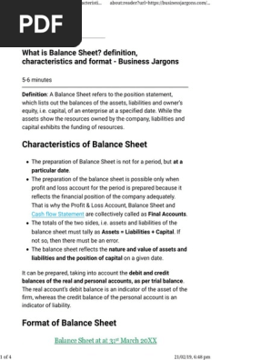 Balance Sheet Definition Characteristics And Format