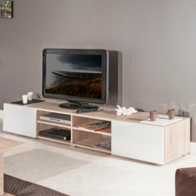 Meuble Tv Moderne Avec 2 Portes Et 2 Niches De Couleur Chene Et Blanche
