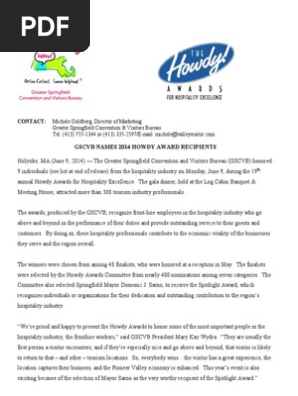 Gscvb Names 2014 Howdy Award Recipients Leisure Tourism